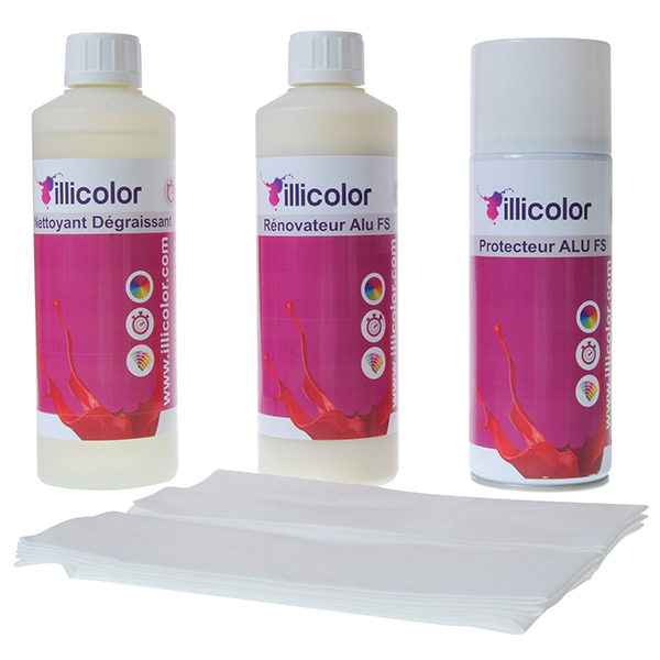 Ce kit contient : un nettoyant dégraissant, un Protecteur ALU FS, et un Rénovateur ALU FS.